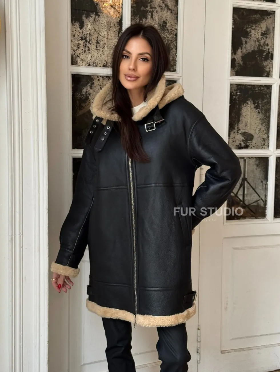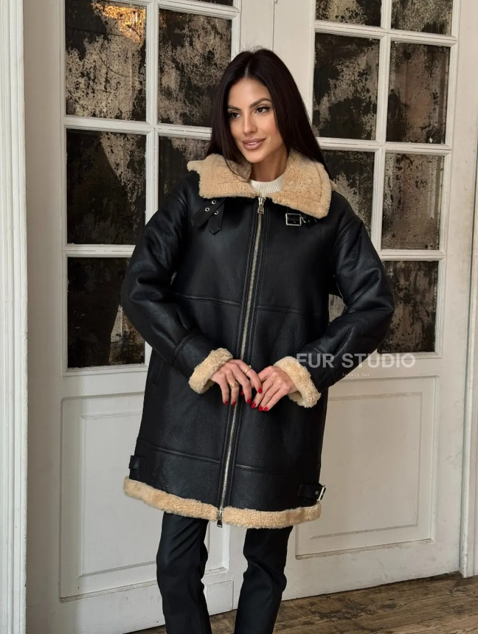 Женская удлиненная дубленка авиатор с отстегивающимся капюшоном доступна для покупки в нашем шоуруме Furs Studio в Чите, а также предлагается удобная доставка во все города России. Обогатите свой гардероб этой дубленкой, которая прослужит вам многие годы, добавив немного роскоши в ваш повседневный образ.
