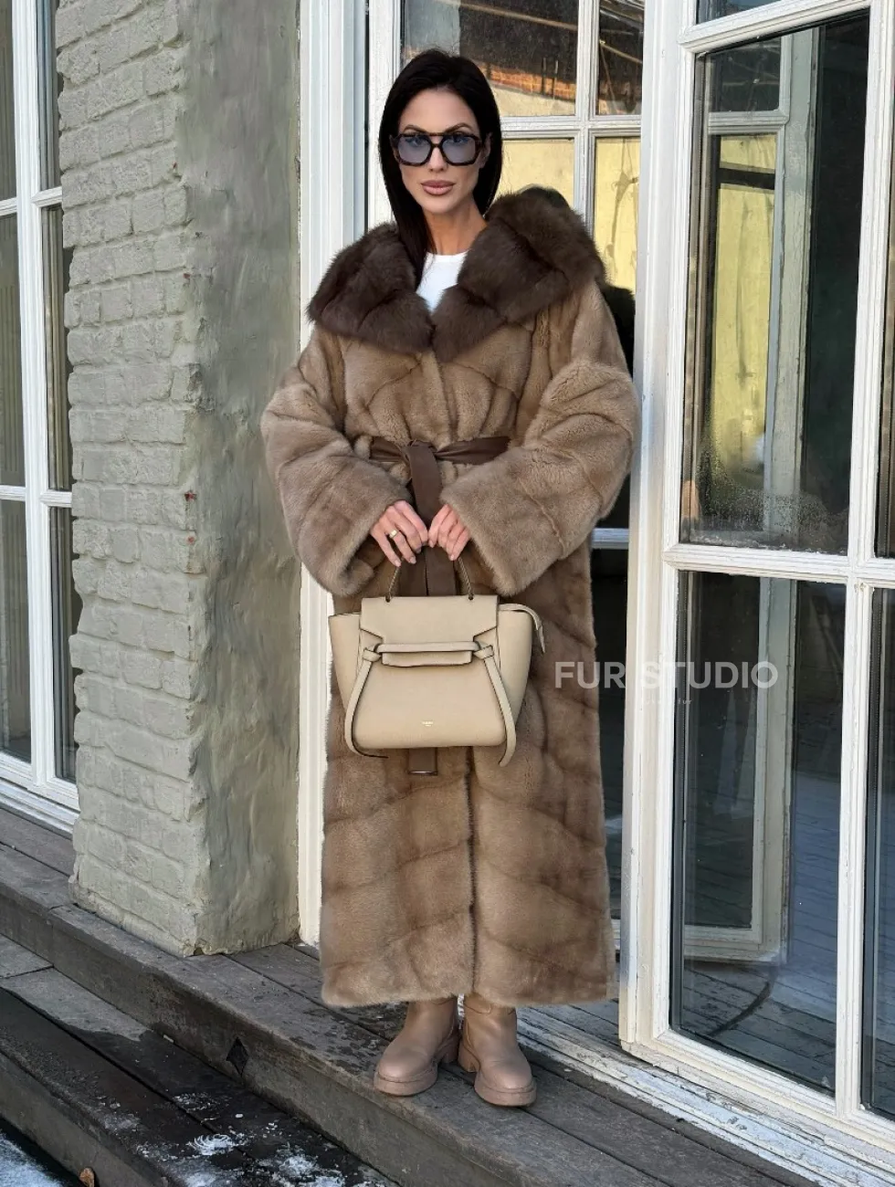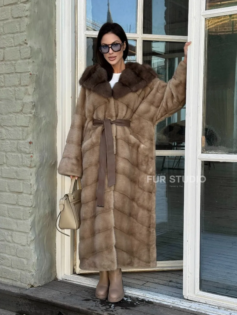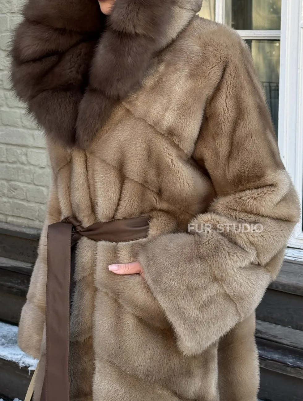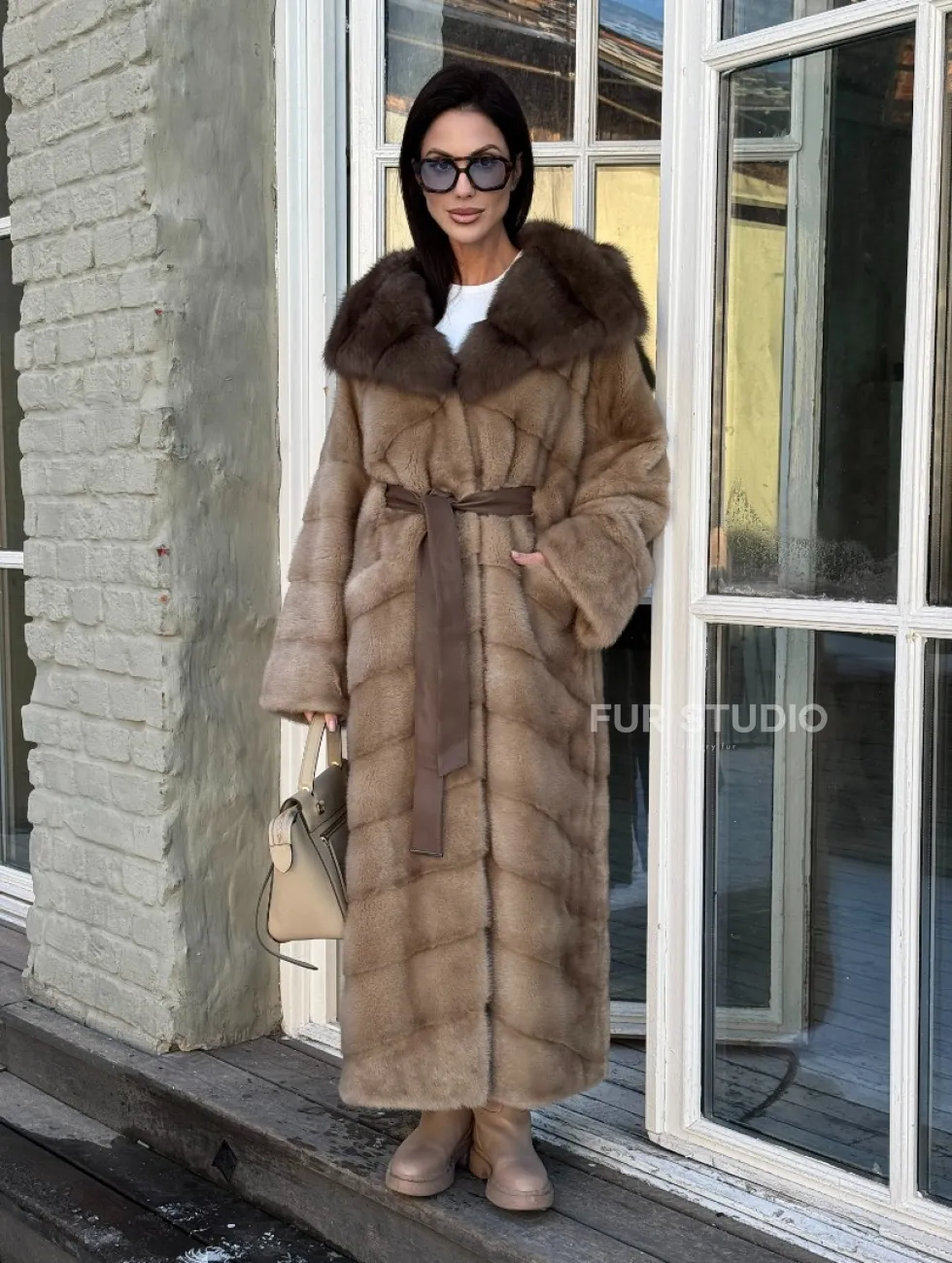Женская удлиненная норковая шуба в цвете пастель с капюшоном из меха куницы доступна для покупки в нашем шоуруме Furs Studio в Чите. У нас так же есть доставка во все города России. Добавьте немного роскоши в свой гардероб с этой шубой, которая будет служить вам многие годы.