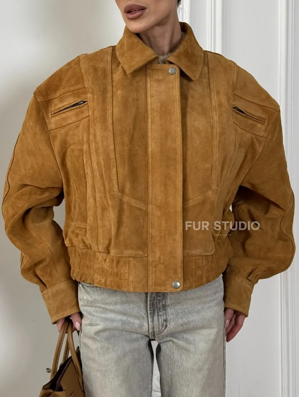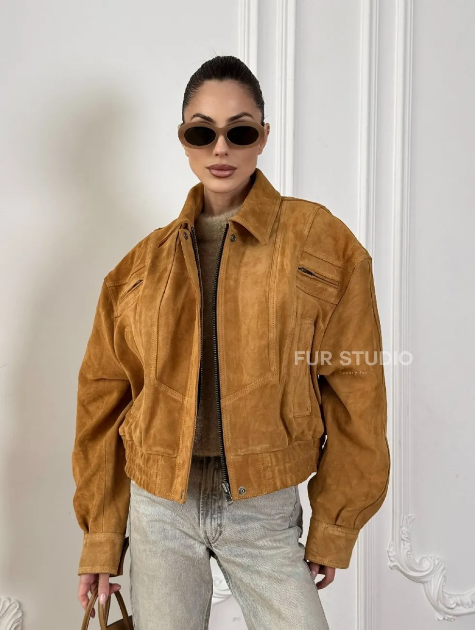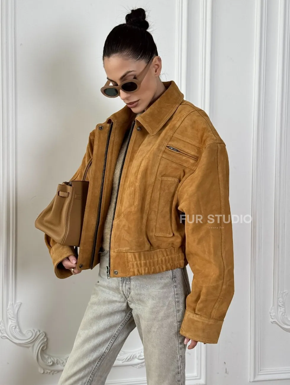 Женская замшевая куртка бомбер Camel - «High street style» доступна для покупки в нашем шоуруме Furs Studio в Чите, где также предоставляется удобная доставка во все города России.