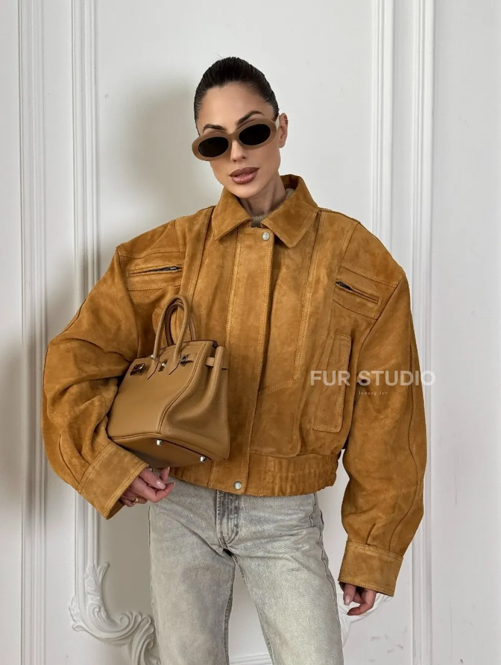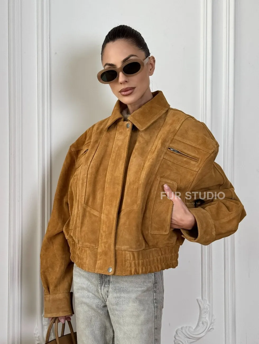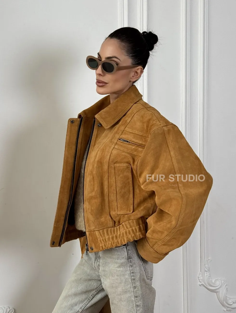 Женская замшевая куртка бомбер Camel - «High street style» доступна для покупки в нашем шоуруме Furs Studio в Чите, где также предоставляется удобная доставка во все города России.