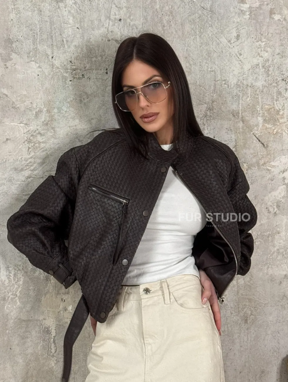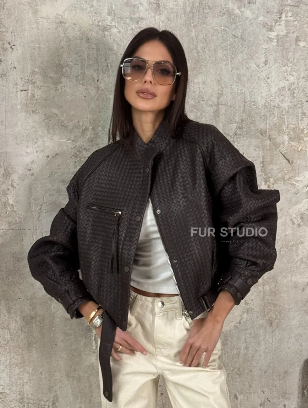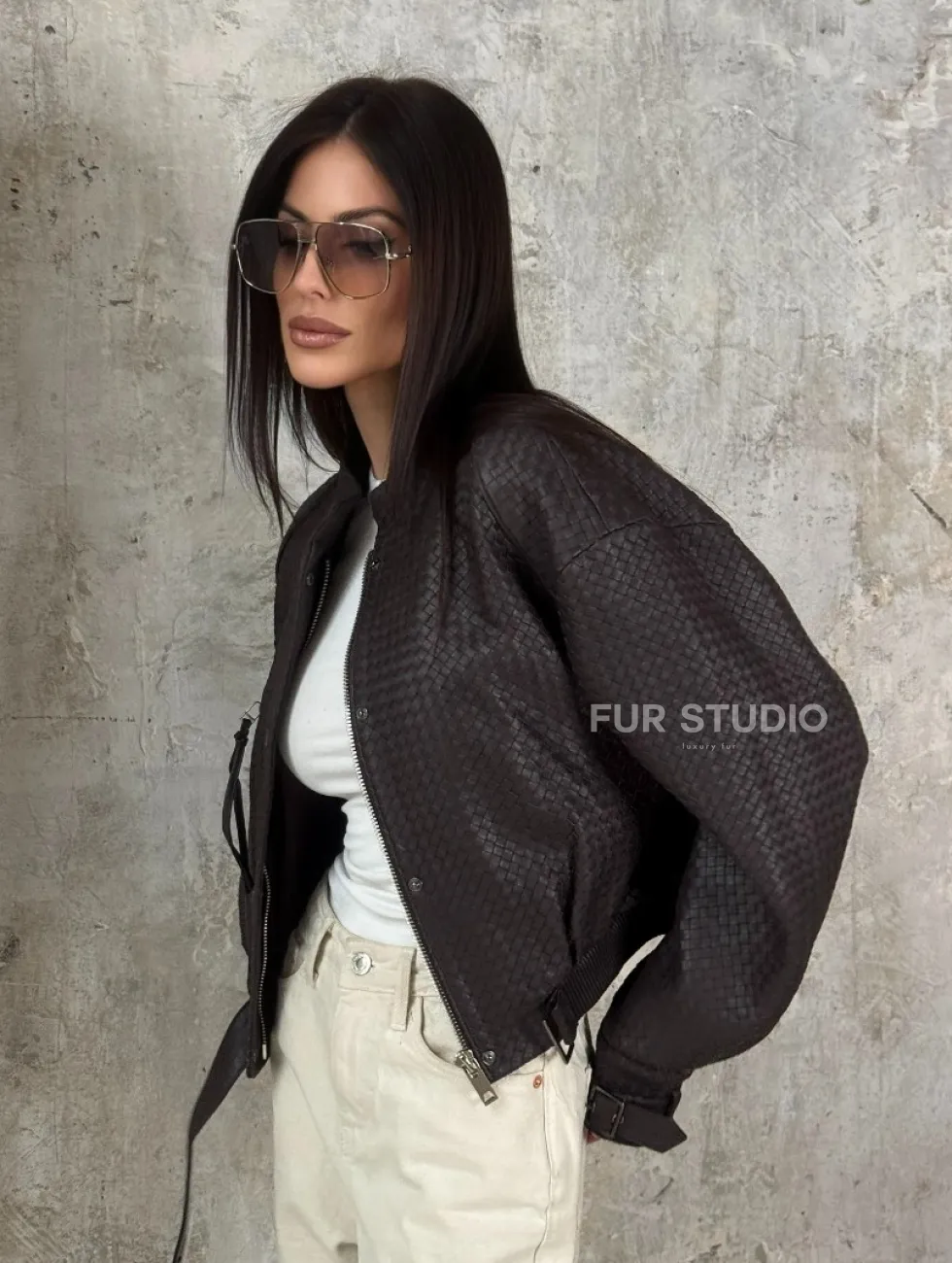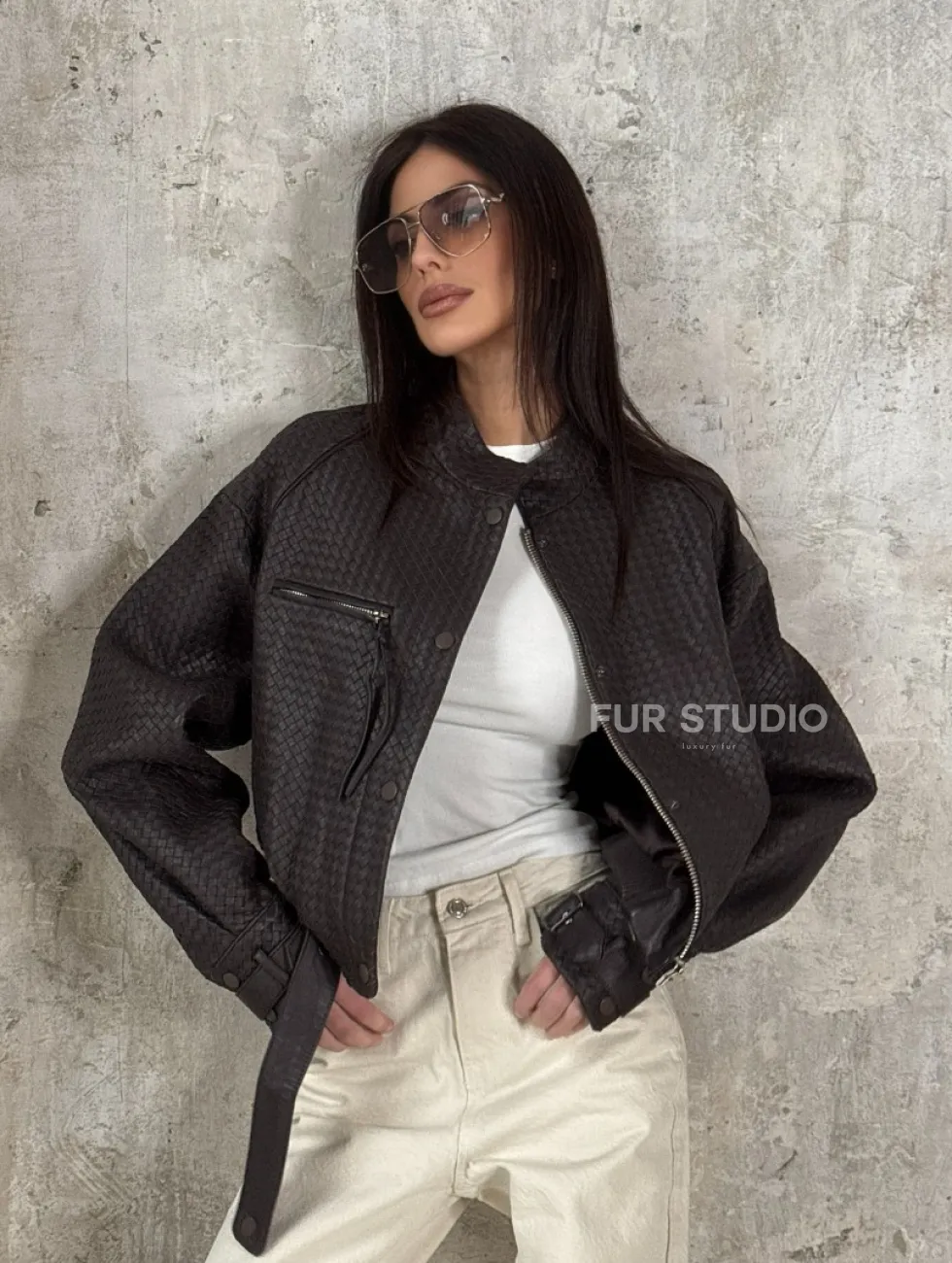 Восхититесь элегантностью и несравненным комфортом с нашей эксклюзивной коллекцией кожаных изделий. Изготовленная из первоклассной натуральной кожи, Женский бомбер из натуральной плетёной кожи не только согреет вас в прохладные дни, но и подчеркнет ваш изысканный вкус. Уникальный дизайн и высокое качество делают наши представленные образцы идеальным выбором для утончённых образов.