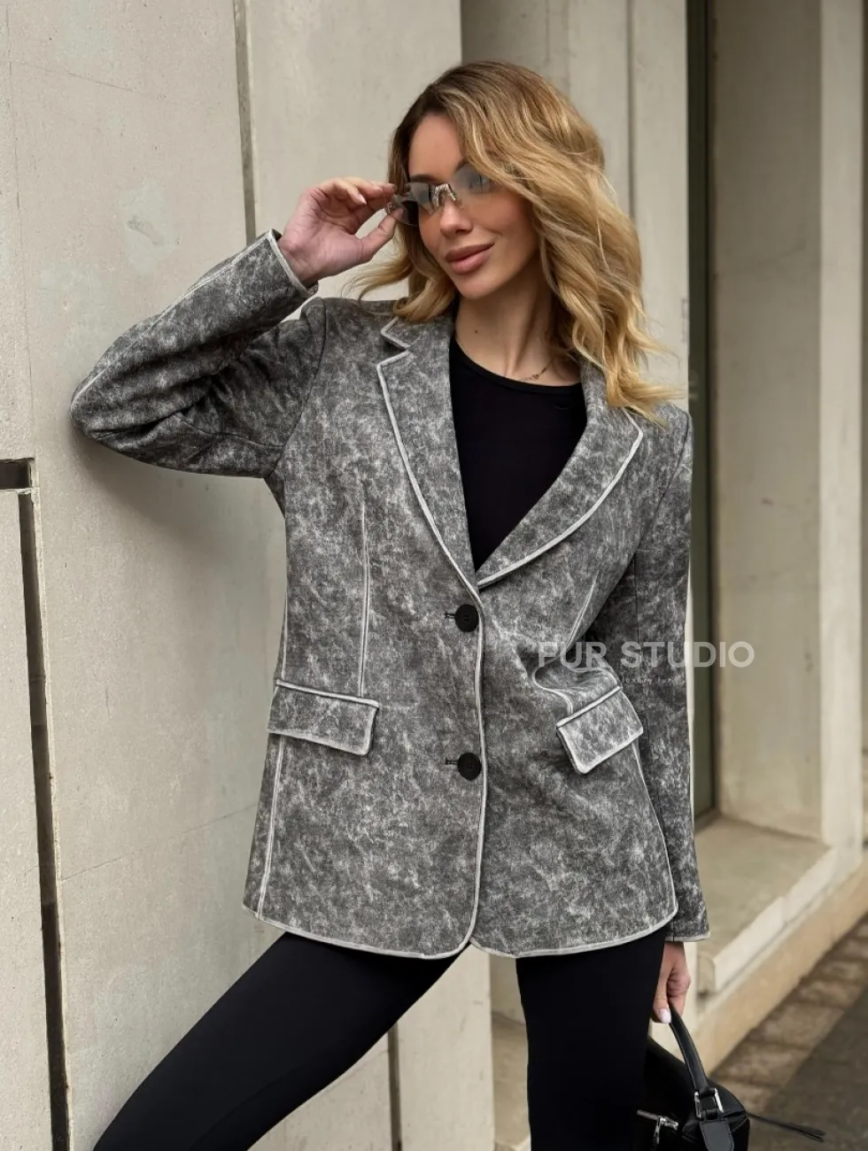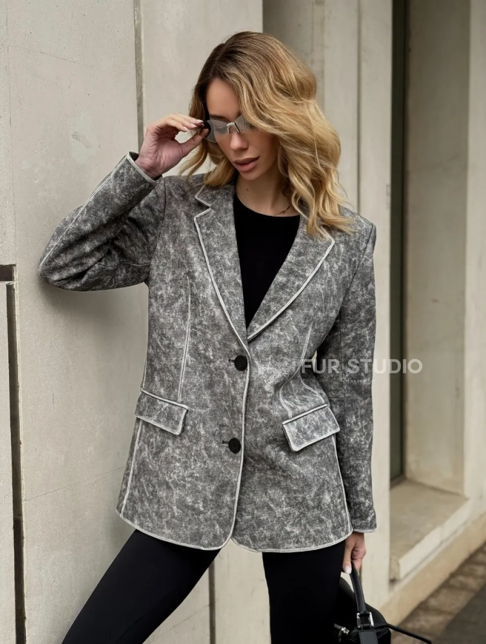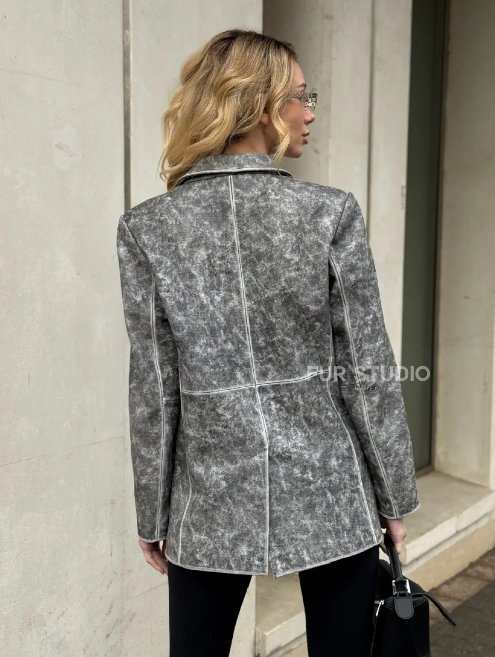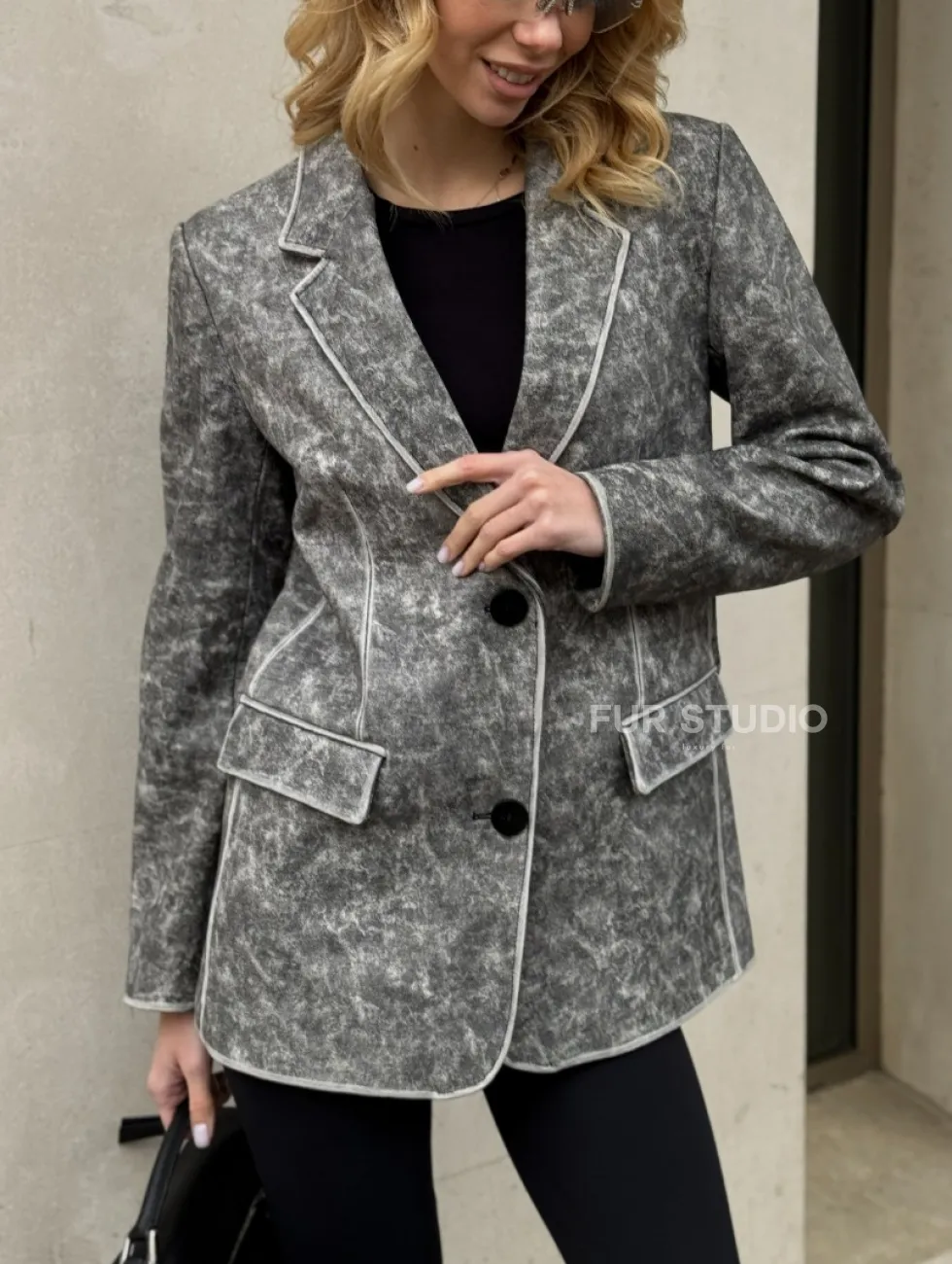 Женский кожаный пиджак Retro style весна 2025 - Vintage Marble доступна для покупки в нашем шоуруме Furs Studio в Чите, где также предоставляется удобная доставка во все города России.