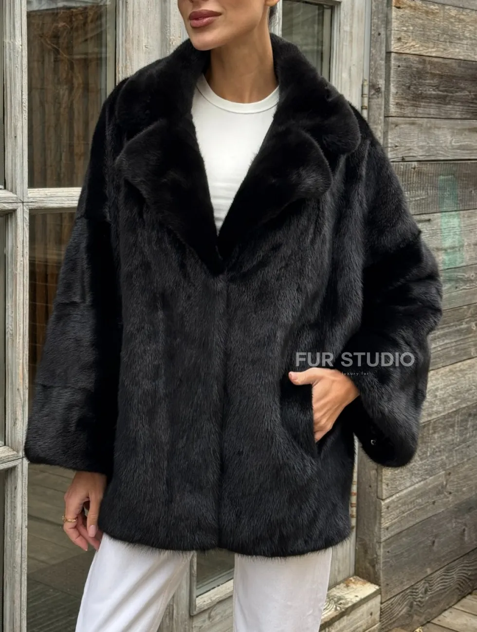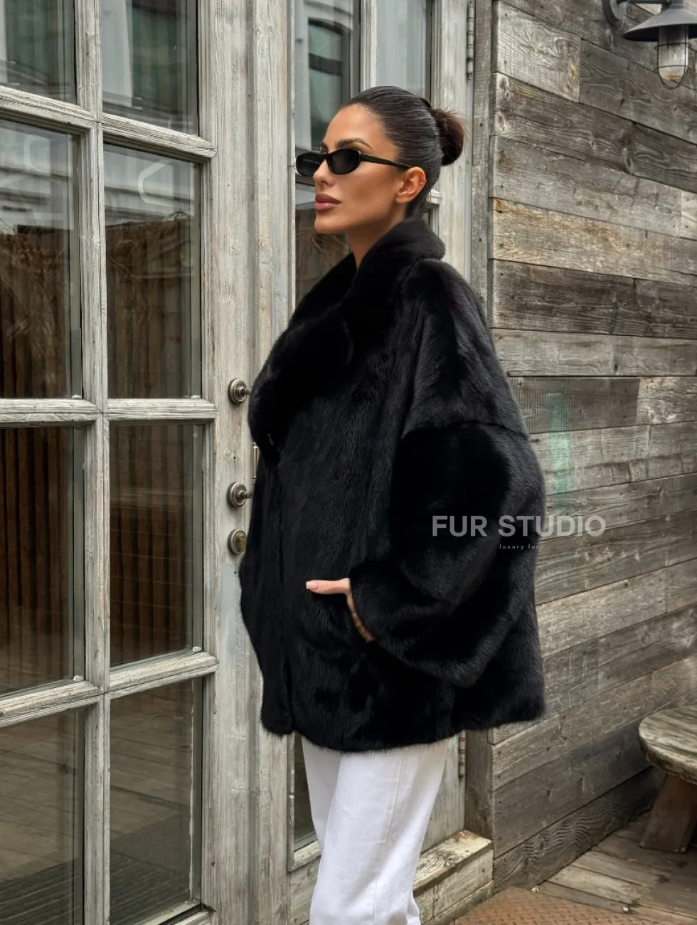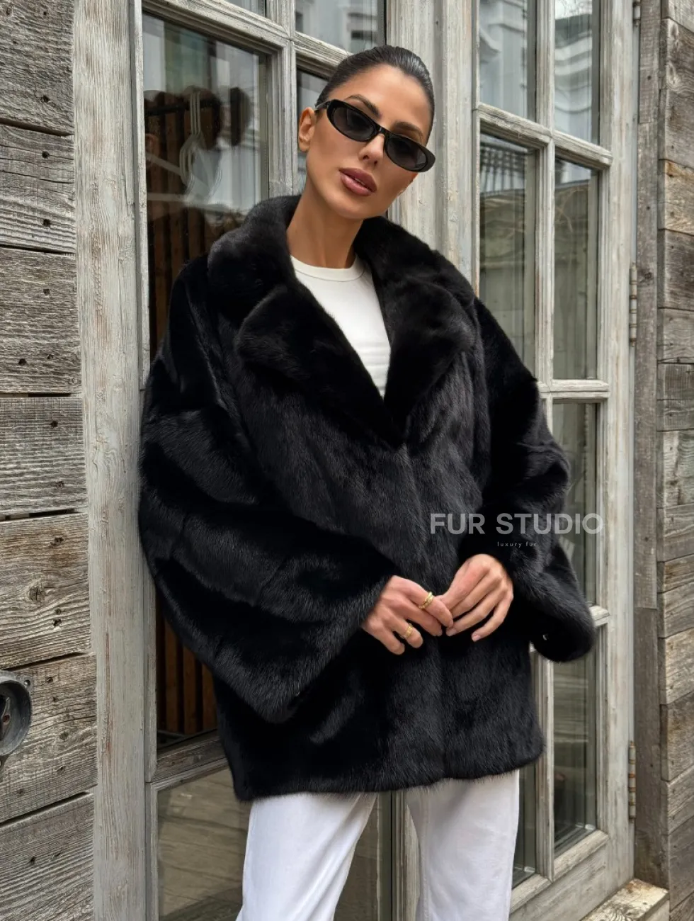 Женский норковый полушубок оверсайз в цвете Black, английский воротник доступна для покупки в нашем шоуруме Furs Studio в Чите. У нас так же есть доставка во все города России. Добавьте немного роскоши в свой гардероб с этой шубой, которая будет служить вам многие годы.