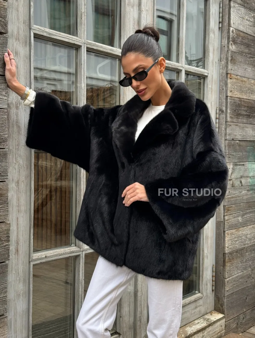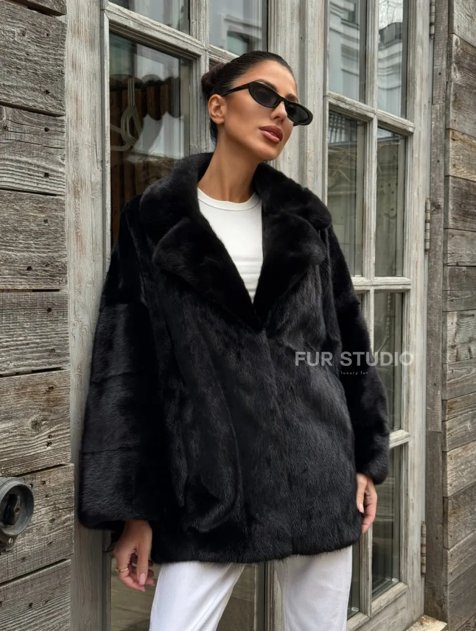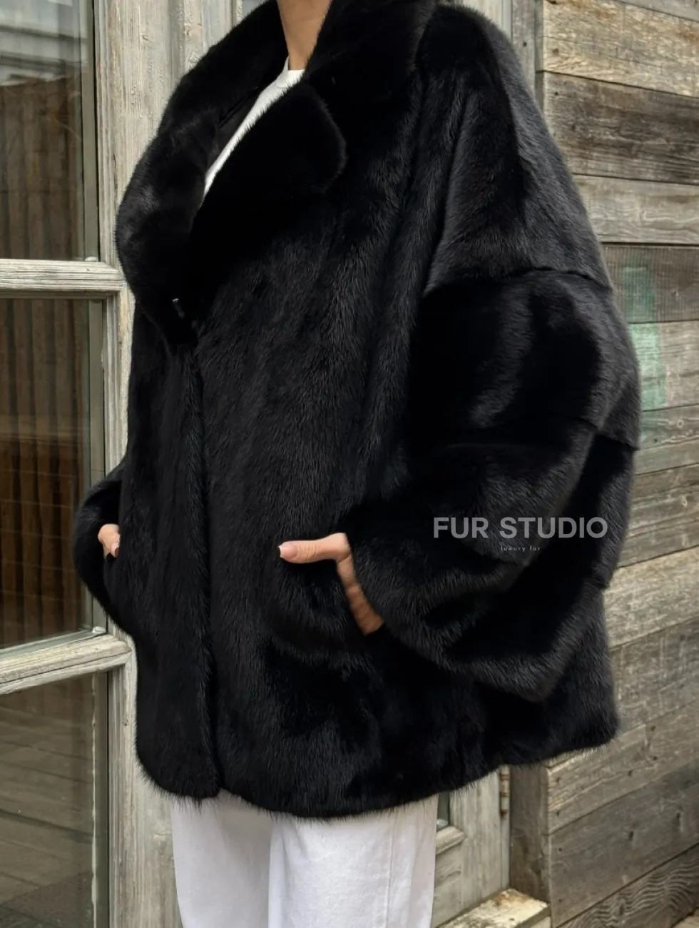 Женский норковый полушубок оверсайз в цвете Black, английский воротник доступна для покупки в нашем шоуруме Furs Studio в Чите. У нас так же есть доставка во все города России. Добавьте немного роскоши в свой гардероб с этой шубой, которая будет служить вам многие годы.