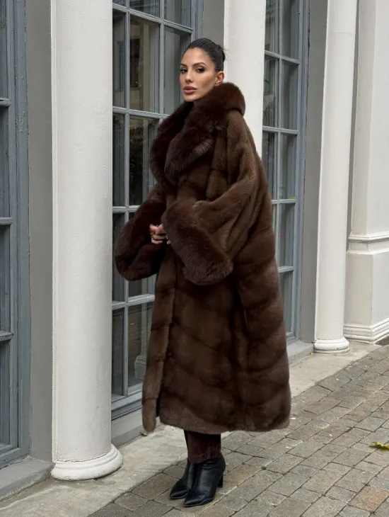 Женский стеганный пуховик на гусином пуху с отделкой из меха песца 101275