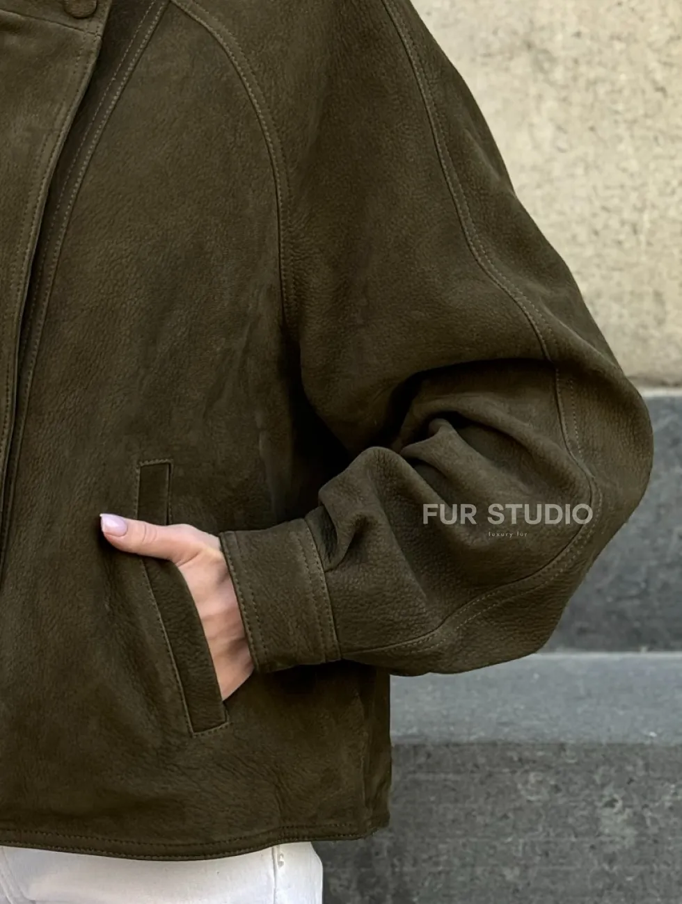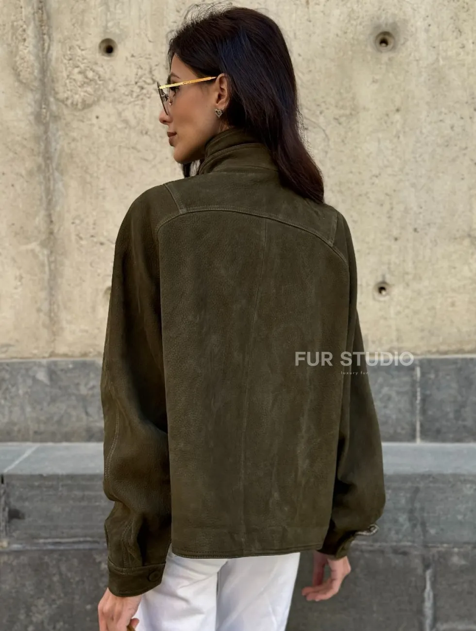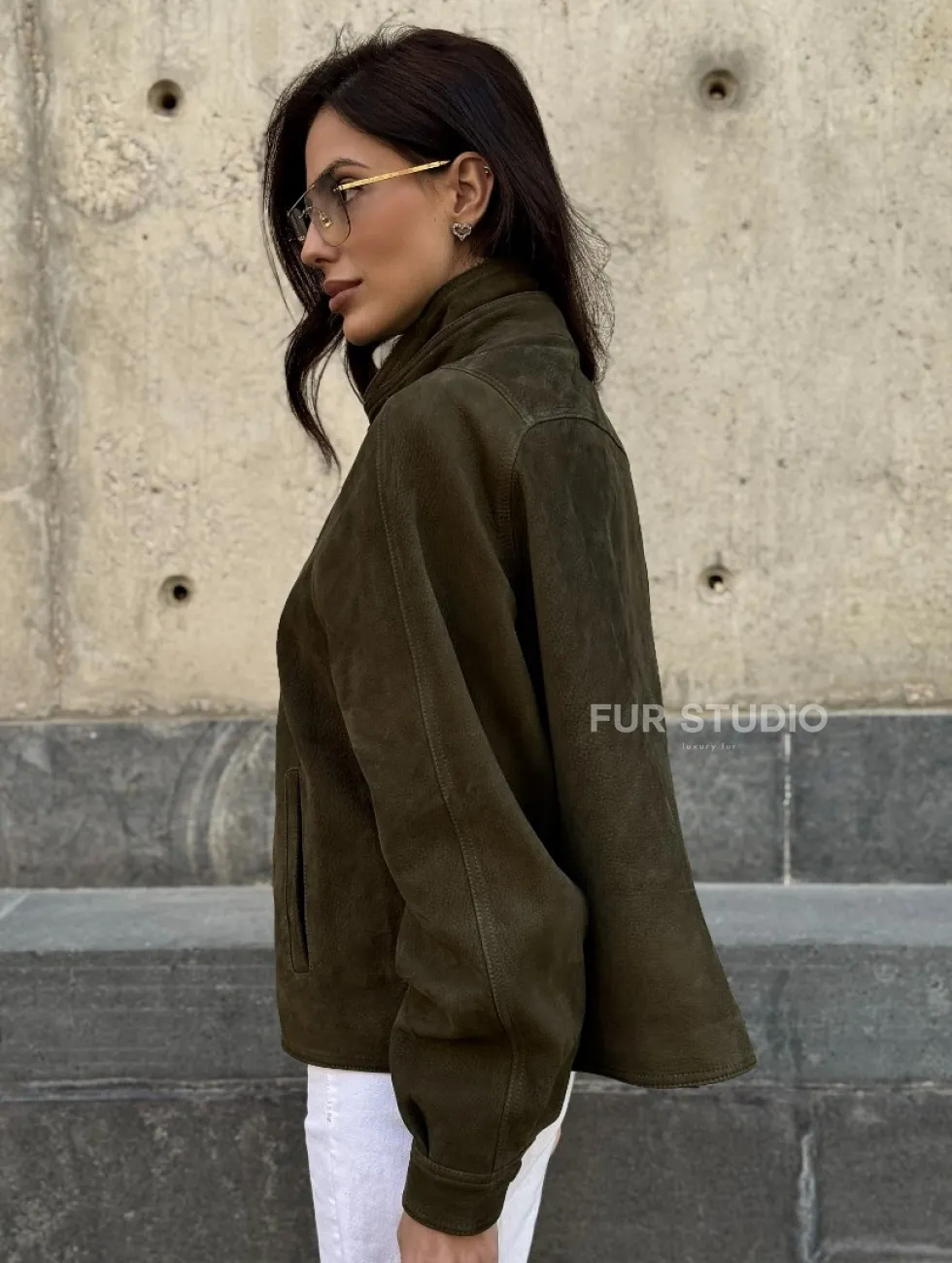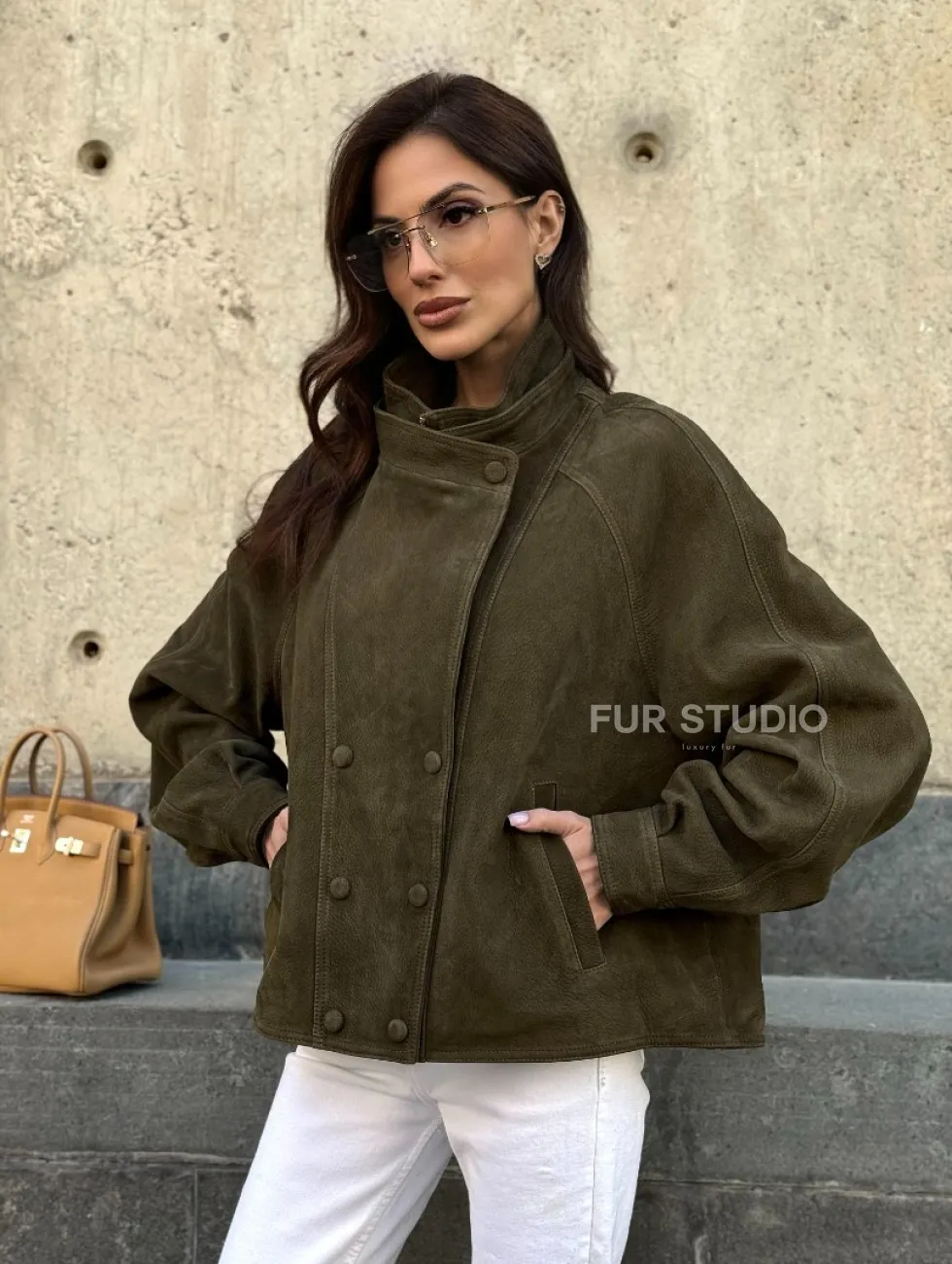 Восхититесь элегантностью и несравненным комфортом с нашей эксклюзивной коллекцией кожаных изделий. Изготовленная из первоклассной натуральной кожи, Женский замшевый блейзер - стойка воротник не только согреет вас в прохладные дни, но и подчеркнет ваш изысканный вкус. Уникальный дизайн и высокое качество делают наши представленные образцы идеальным выбором для утончённых образов.