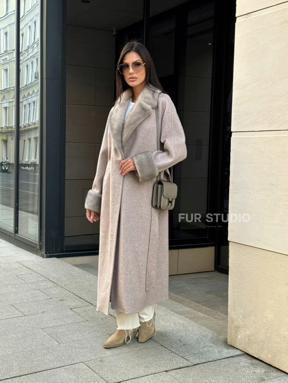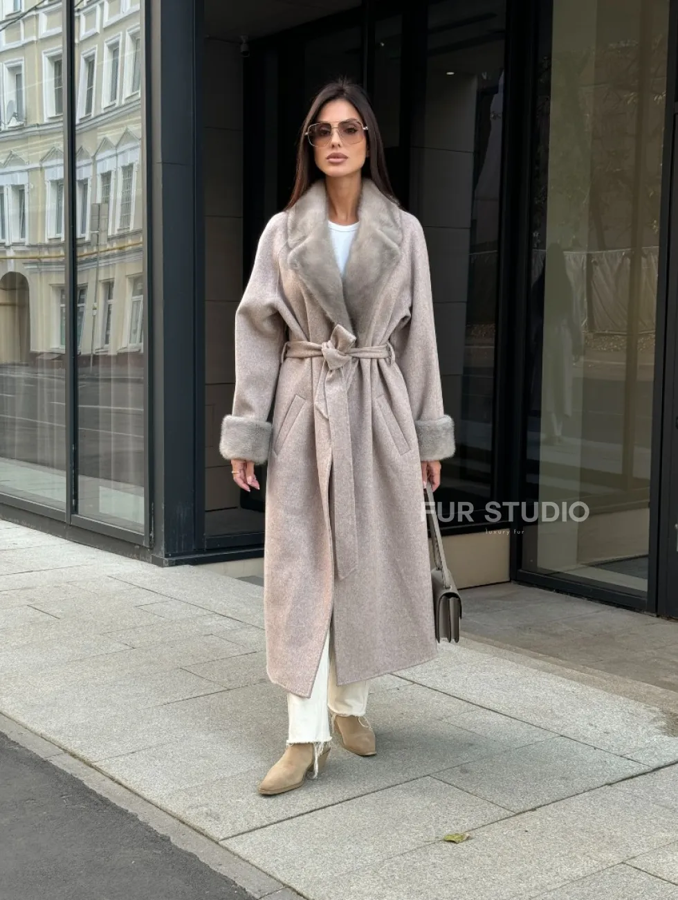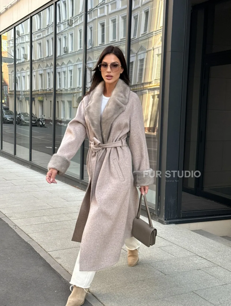 Женское демисезонное пальто с отделкой из меха норки 101133