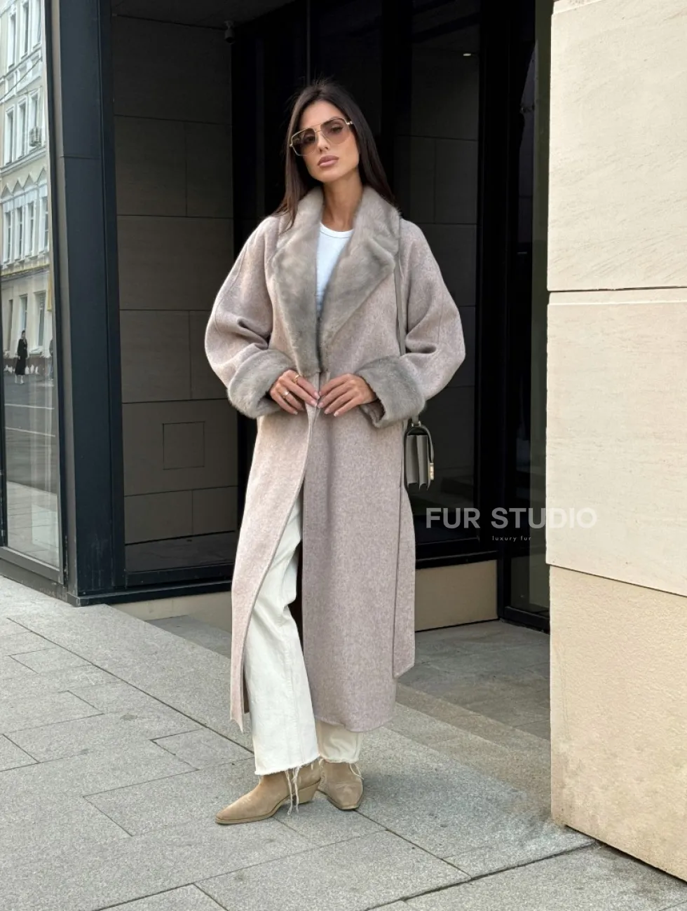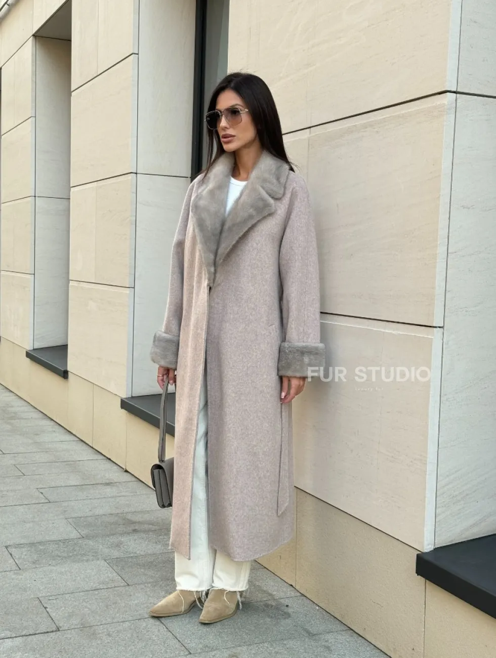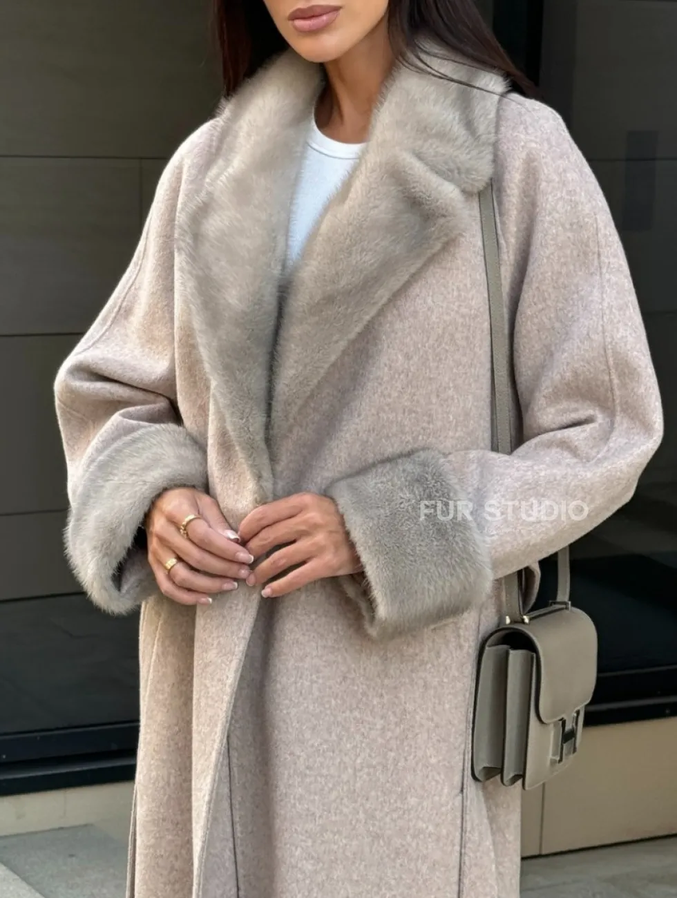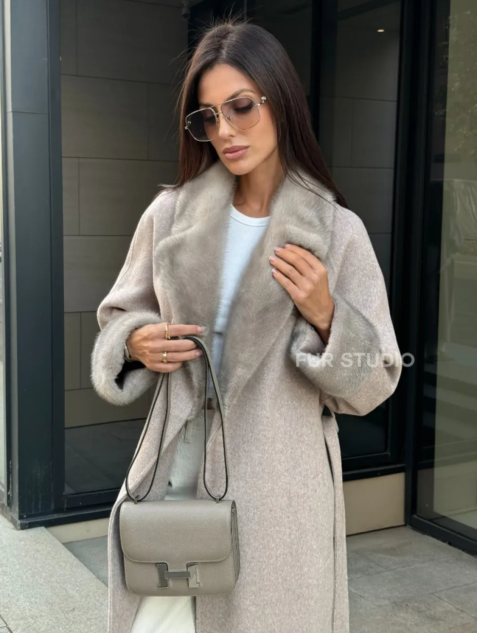 Женское демисезонное пальто с отделкой из меха норки 101133