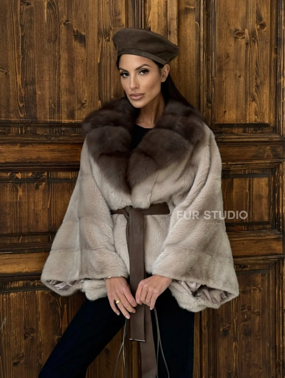 Женское меховое манто из норки Pastel - "Летучая мышь" с воротником из куницы доступна для покупки в нашем шоуруме Furs Studio в Чите. У нас так же есть доставка во все города России. Добавьте немного роскоши в свой гардероб с этой шубой, которая будет служить вам многие годы.