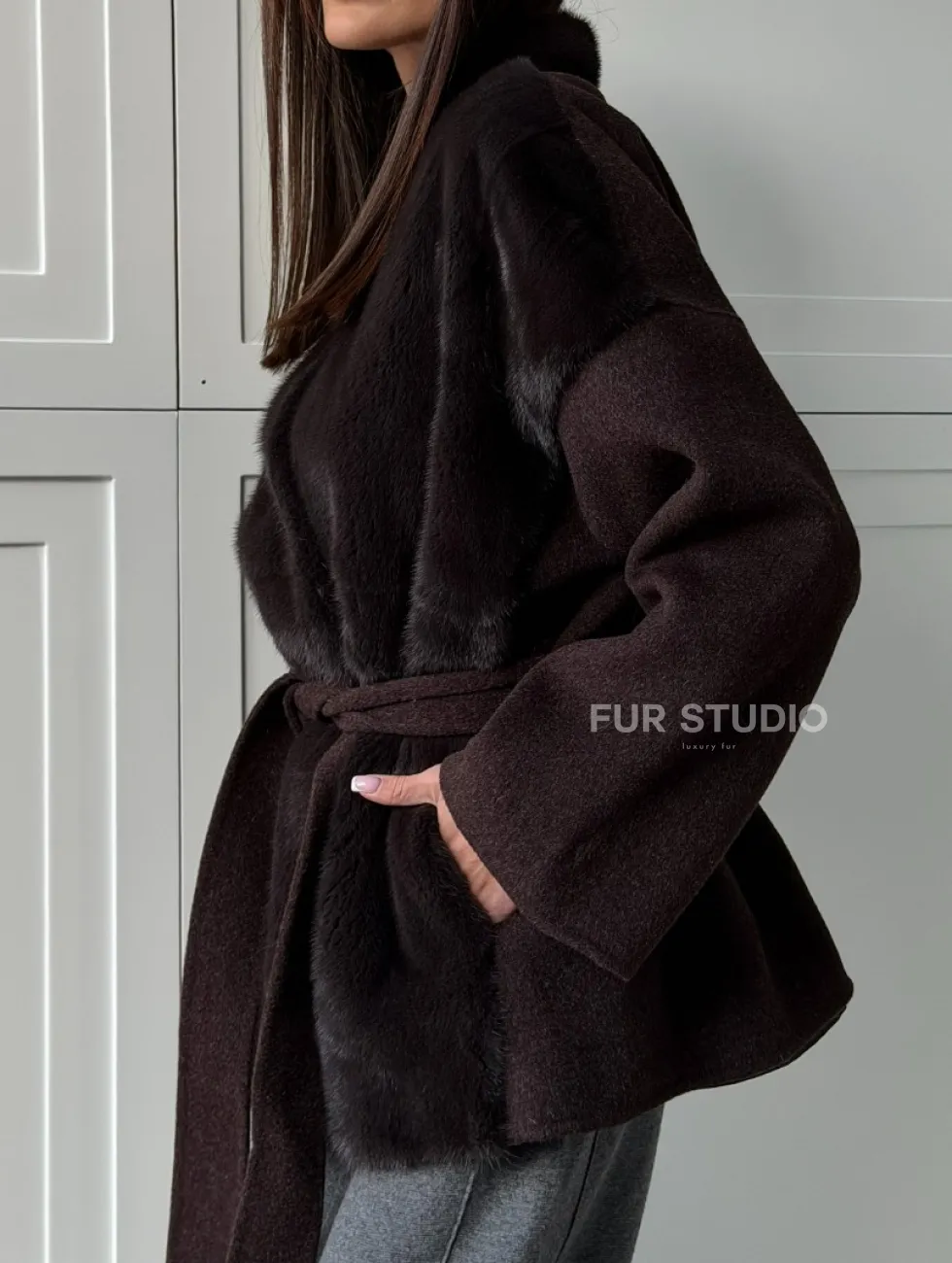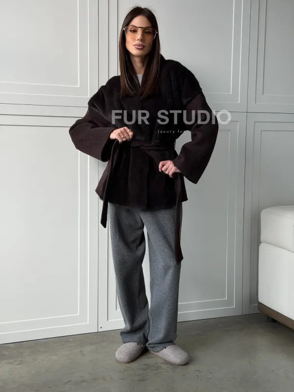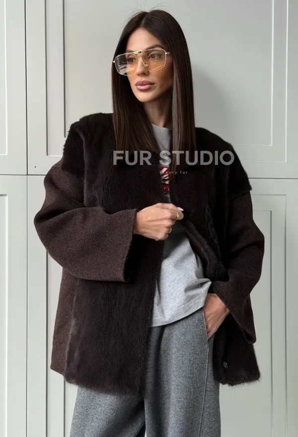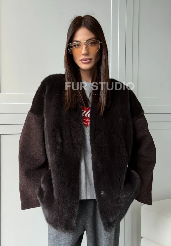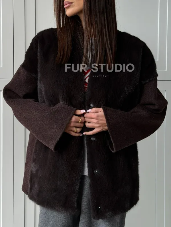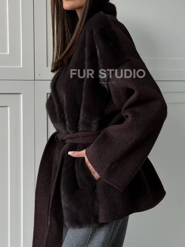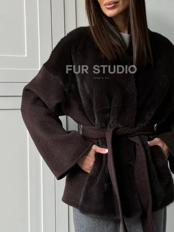 Женское полупальто с мехом норки 102837