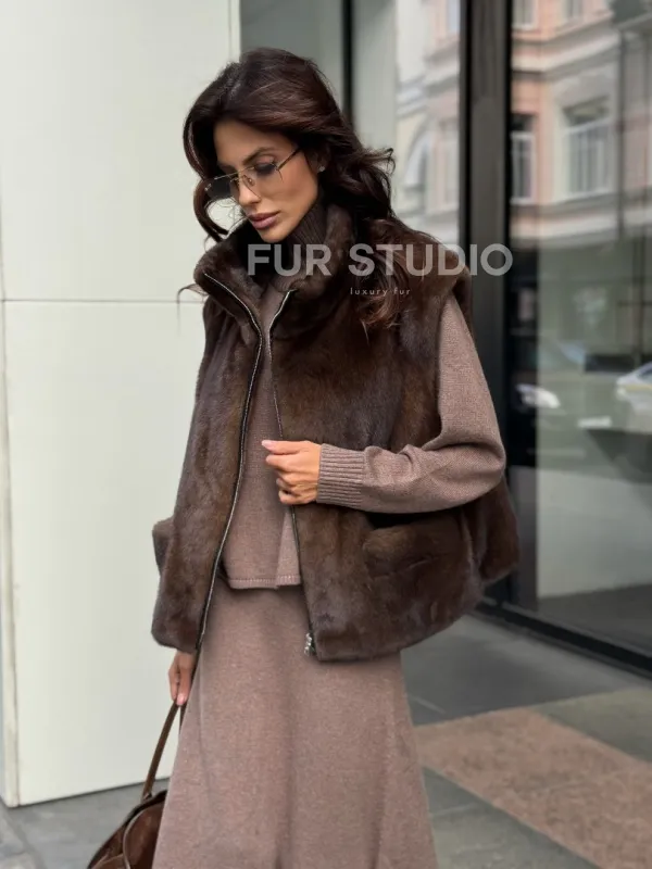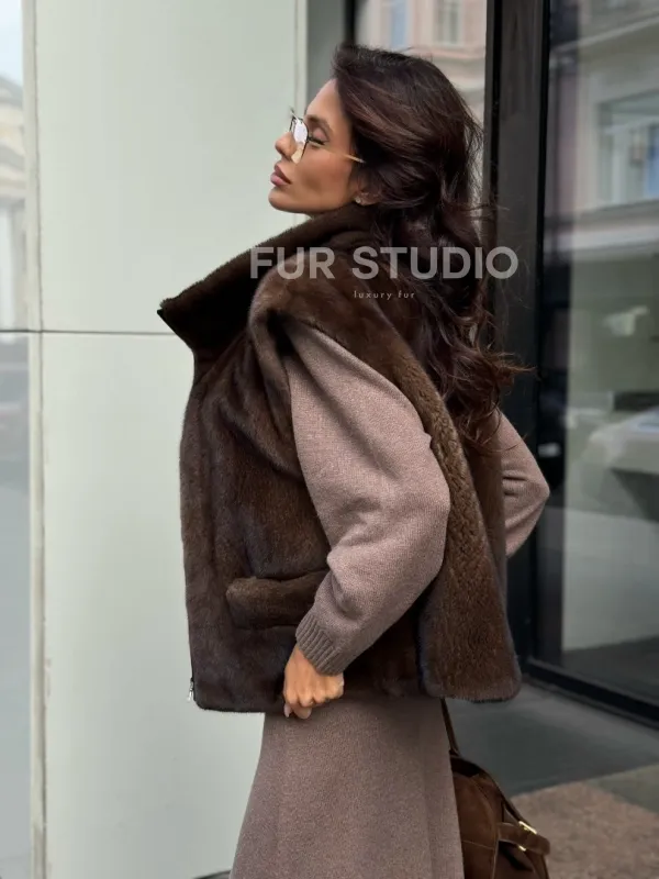 Жилет из норки доступен для покупки в нашем шоуруме Furs Studio в Чите. Мы также предлагаем удобную доставку во все города России. Приобретите немного роскоши для вашего гардероба с этой осенью-зимой!