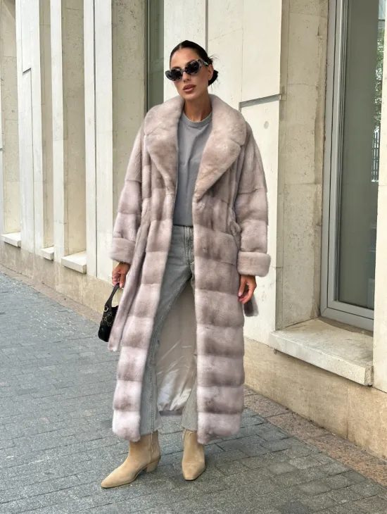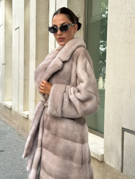 Материал выбранной модели — аукционная норка, доступна в цвете бежевый. Куртка предлагается в разнообразии размеров, от S до XL, а ее длина составляет 70-75 см, что выигрышно подчеркивает вашу фигуру. Этот вариант идеально подходит для тех, кто ценит роскошь и утонченность натуральных материалов.