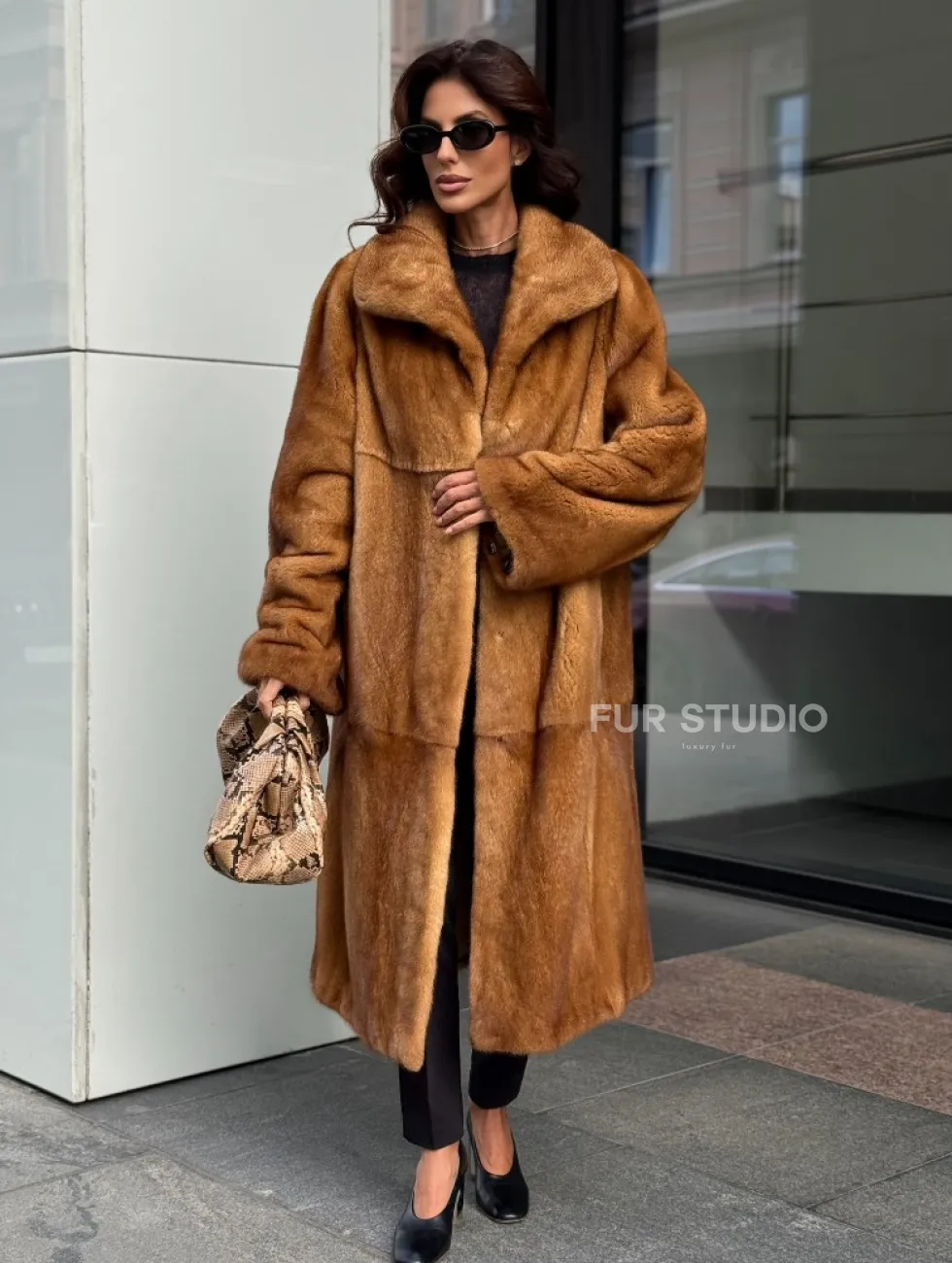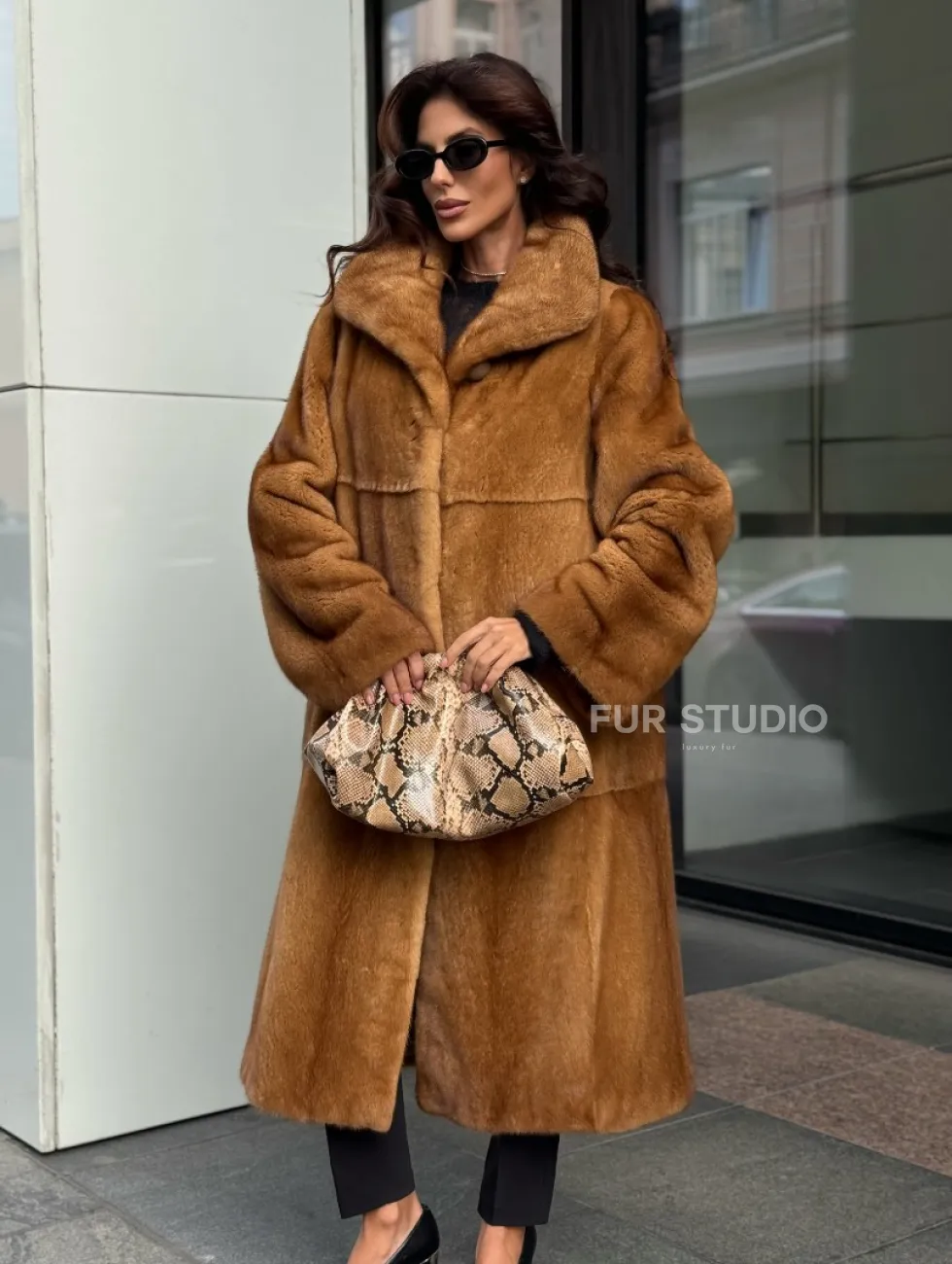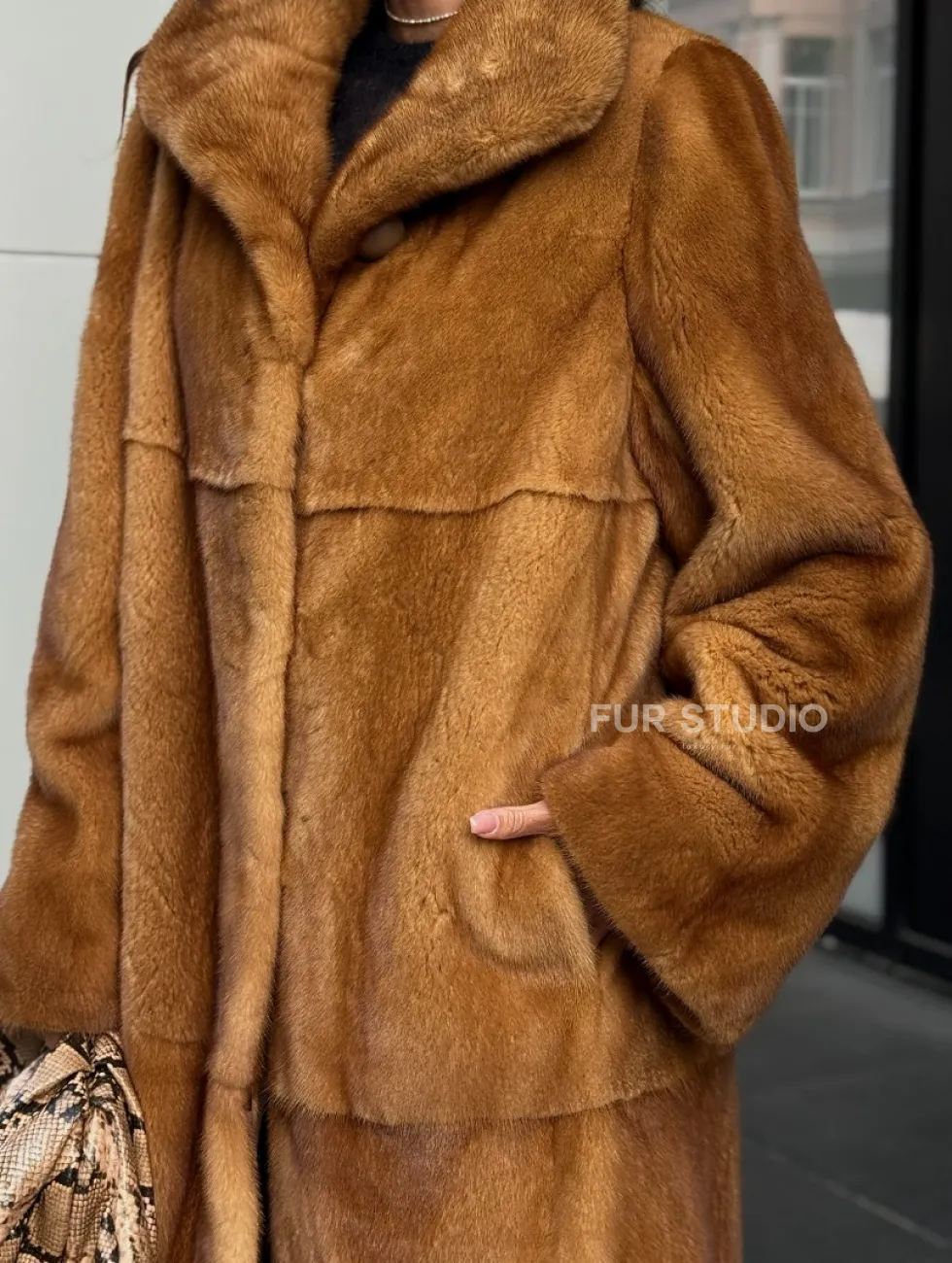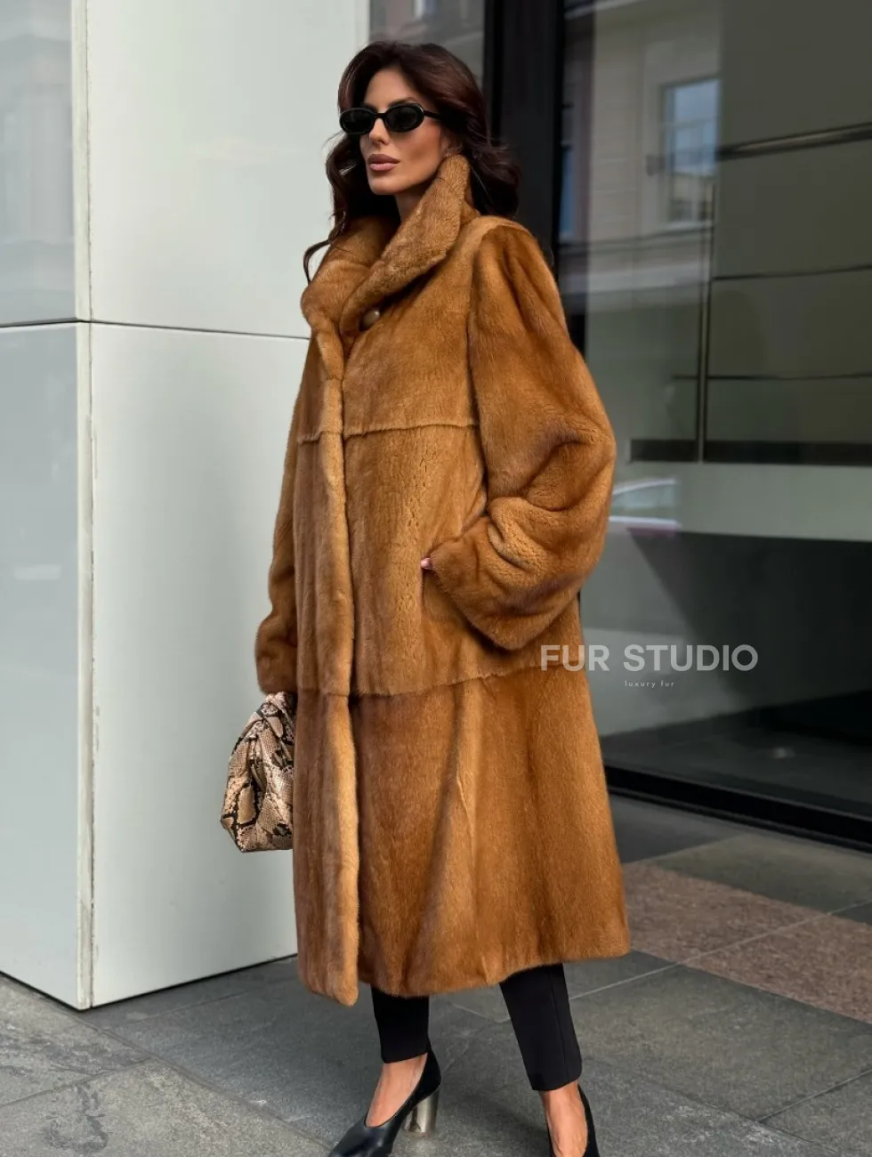 Золотистая норковая шуба с воротником апаш - New 2026 доступна для покупки в нашем шоуруме Furs Studio в Чите. У нас так же есть доставка во все города России. Добавьте немного роскоши в свой гардероб с этой шубой, которая будет служить вам многие годы.